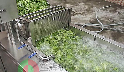 切割好的物料進入氣泡清洗機,本機采用高壓氣體產(chǎn)生鼓泡,循環(huán)水泵沖浪,臭氧殺*毒和提升高壓噴水四重清洗。分離蔬菜上面粘連的泥沙,雜質(zhì)。清洗過程噴淋和高壓噴嘴持續(xù)供水,供水量可調(diào),方便客戶根據(jù)蔬菜處理量及清潔程度進行靈活調(diào)節(jié)。