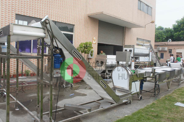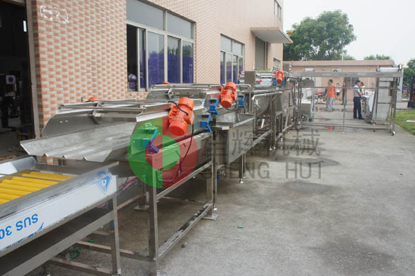 煙臺LGX公司是一家集蔬菜種植、處理、配送為一體的蔬菜加工生產企業,主要處理生菜、白菜等葉菜類蔬菜以及土豆、蘿卜等根莖類蔬菜,我司針對其處理的物料為其定做了兩條專門處理葉菜及根莖類蔬菜的生產線,包括分選-清洗-切割-瀝水-去雜-包裝等