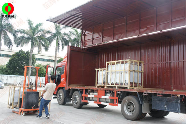 客戶訂購的一批蔬果清洗切割加工機(jī)械裝車出貨!