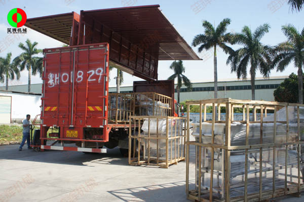 江西客戶日前訂購排單生產的大批蔬果加工機械已于近期順利生產制造完畢,并通過質檢部門后打包裝車出貨.設備包含了渦流洗菜機,氣泡洗菜機及提升機相關輔助設備.