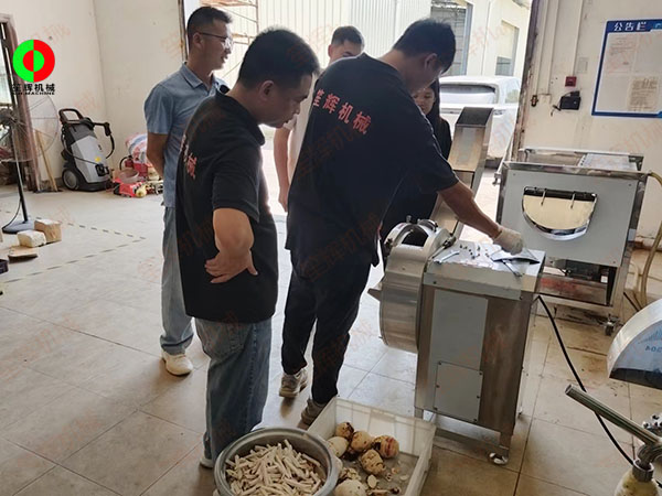 近日,客戶訂購的一批蔬果加工設備順昨生產制造完工,客戶親臨我司進行物料試機驗收發貨!設備包括了蔬菜切段、芋頭去皮、土豆切條、南瓜分瓣等設備!測試效果得到客戶的認可。