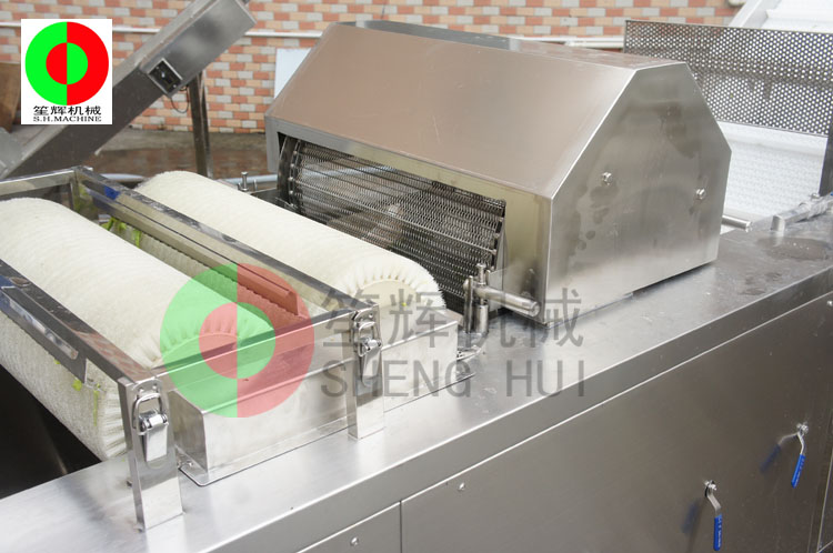 - 產品優勢: 人工分選后的原材料經切菜機切割后,由輸送機提升輸送到QX-42氣泡清洗機,經過清洗消*毒后的物料進入瀝水風干機去除多余水分。
