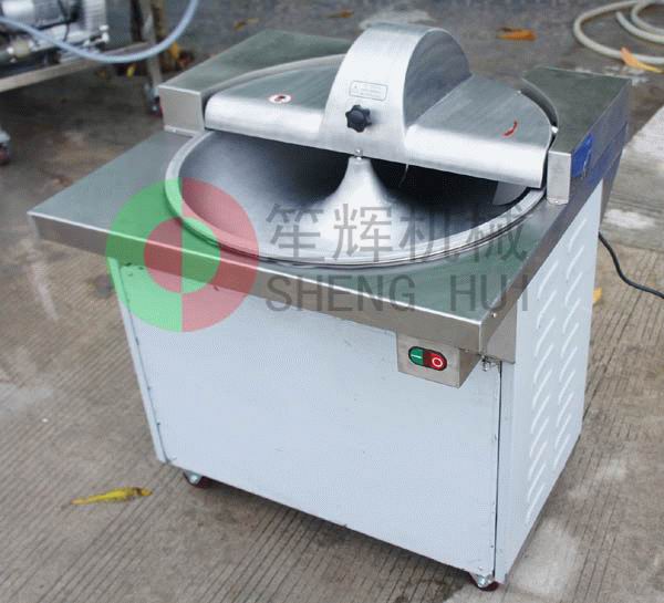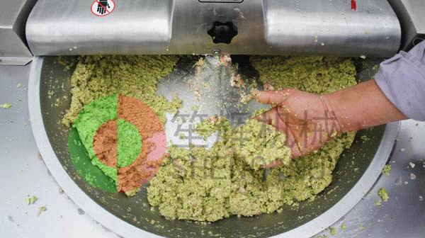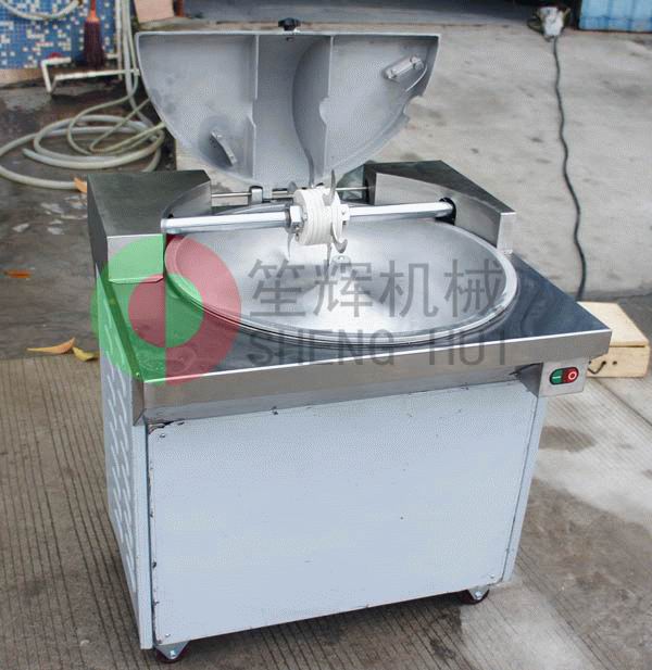 斬拌機利用斬刀高速旋轉的斬切作用,將肉塊、蔬菜等主要原料精細的斬切成肉餡或肉泥,同時將其它輔料一起攪拌均勻。