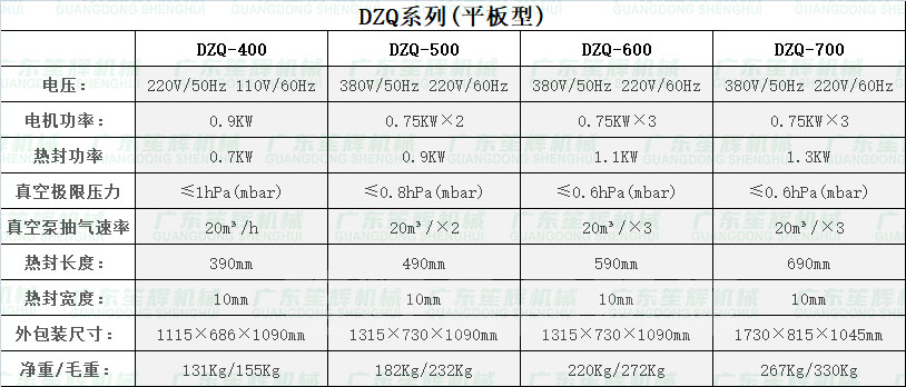 雙室真空包裝機/真空包裝機 系列參數(shù)表