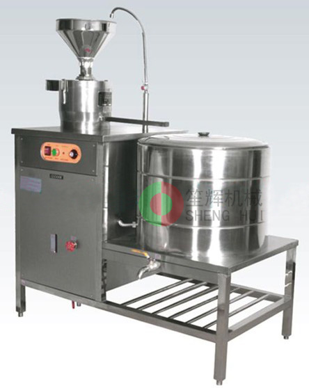 機器工作原理:將浸泡好的黃豆由磨漿機進行漿渣分離,分離后的豆漿在煮漿過程中,由豆奶機蒸汽包產生的蒸汽進行高溫去腥、均質、乳化,從而制作出新鮮的豆奶原漿。