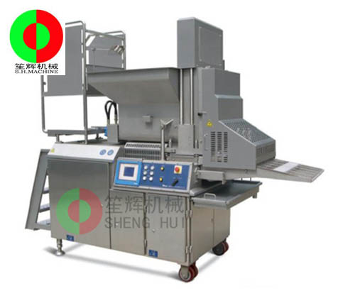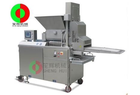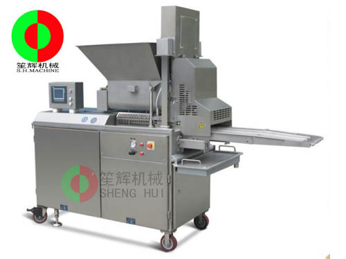 大型自動成型機能自動完成肉的填充、成型、輸出等工序,可以和上漿機、上粉機、油炸機、蒸煮機、速凍機、包裝機組成自動生產線。采用四螺桿送料 裝置,減少對物料的剪切和損傷,具有產量大,效率高,質量穩定的特點。整機采用不銹鋼制造,美觀耐磨,符合衛*生標準,采用進PLC處理 器,LCD觸摸屏操作,中英文操作界面,操作簡單易懂,帶故障自動報警系統。帶有保護系統裝置,可靠。適用于肉類,禽類,魚蝦水產品,蔬果等等的成 型,不僅適用于糜類原料的成型,更適用于給類塊狀產品的成型。可以生產漢堡肉餅,雞塊,雞排,魚餅,南瓜餅,土豆餅等產品。適合肉類加工廠,餐飲行業,食 品配送中心等單位使用。
