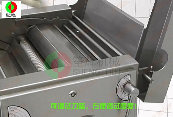 工作寬度435MM,可調式刀座,靈活方便進行處理厚度調整,它適用于牛肉,豬肉,羊肉等肉類進行表面筋膜處理,效果佳!