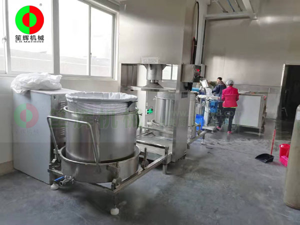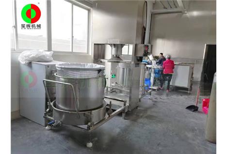 姜汁生產線,主要針對生姜毛輥清洗去表皮,然后提升到切菜機進行初步切割細化物料,接下來提升到破碎設備把物料打碎成泥狀,最后將泥狀生姜打包裝好放入壓榨機組進行渣汁分離,姜汁既可送入下一生產工序環節(出汁率可高至90%),姜渣可進行烘干處理。