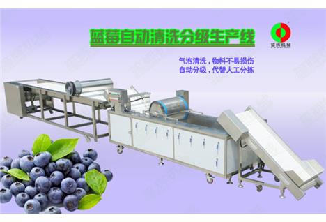 藍莓全自動清洗分級生產線,主要由提升機及氣泡清洗設備及分選分揀設備組合成自動生產線;氣泡清洗模式能夠避免防止藍莓在清洗工藝中損傷,影響成品質量;自動分級分揀,生產線代替人工勞作,大大節省勞動力成本。