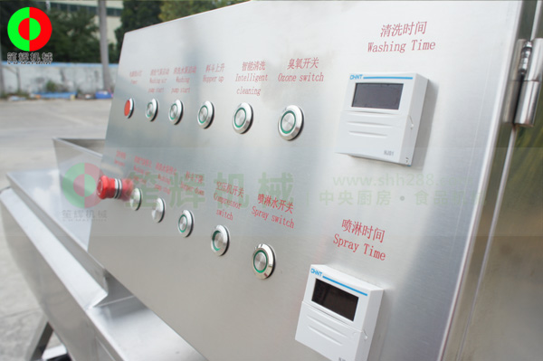 *數顯式時間控制器,自動定時清洗功能時間可根據物料清洗加工情況任意設定,清洗時間到達后,設備會自動將內膽提升,將物料與清洗水面分離;