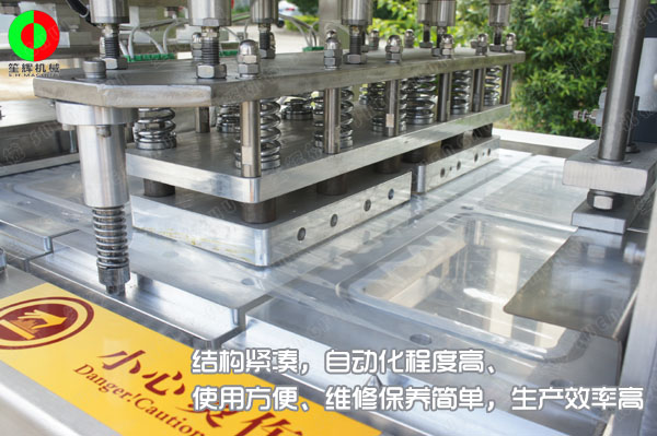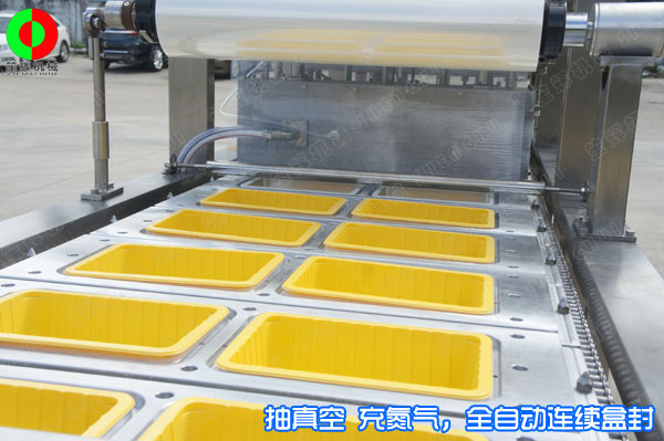 FK-1200 全自動(dòng)盒式封口機(jī),氣動(dòng)機(jī)構(gòu)相配合連續(xù)運(yùn)轉(zhuǎn)方式,自動(dòng)完成走板,自動(dòng)打碼,自動(dòng)校膜,自動(dòng)封口2次,自動(dòng)抽真空,自動(dòng)沖氮?dú)猓詣?dòng)切膜,自動(dòng)出杯。安*全標(biāo)示貼,預(yù)留充填裝置工位。具有結(jié)構(gòu)緊湊,自動(dòng)化程度高、使用方便、維修保養(yǎng)簡單,生產(chǎn)效率高等特點(diǎn)。可24小時(shí)連續(xù)式作。采304不銹鋼、鋁合金等防腐材料,符合食品衛(wèi)生法,性能穩(wěn)定、是可*靠的理想的食品生產(chǎn)線的主*要設(shè)備。