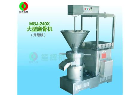 把雞骨架、鴨骨,魚骨,蟹殼,豬骨、牛骨等用碎骨機破碎之后,再使用磨骨機進行研磨加工處理,最終做成骨泥。主要適合加工乳化豬皮,雞骨泥、鴨骨泥、魚糜、雞肉漿、蝦漿等等。MGJ-240X升級版磨骨機在我司傳統MGJ系列磨骨機基礎上升級改進,增加螺旋送料裝置一定程度上解決進料速度偏慢以及耗費較多人力時間成本的問題。設備304不繡鋼制造,本機所采用的磨頭為專用齒型,硬度更高,物料研磨后,效果更細膩,組織更均勻。廣泛應用于各 種香腸、火腿、午餐肉、肉丸、方便面調料、香精、湯膏、寵物食品、速凍食品、軟骨素、骨膠、骨粉、高鈣食品、保健品等等。本機動力大,破碎效果好,產量大,操作簡單,清洗方便,可靠,是肉類加工廠,屠宰加工廠,食品配送中心、生物保健品加工廠的理想設備。