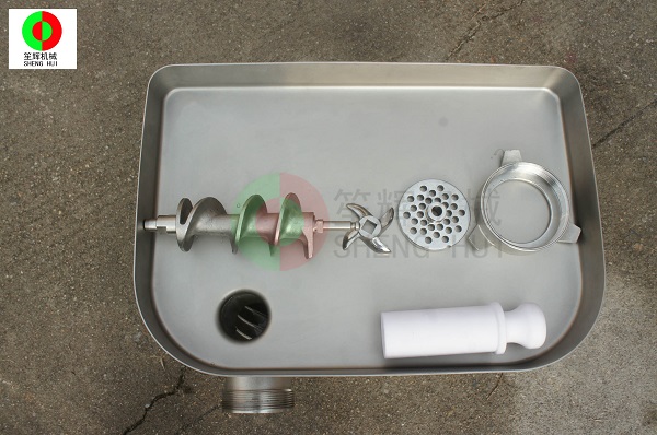 推料螺桿工作通過減速機和電機帶動。它只適用于豬肉、牛肉、油脂、混合肉、魚肉以及羊肉的切碎加工。其它原料的加工,要經過本公司的確認方可使用。