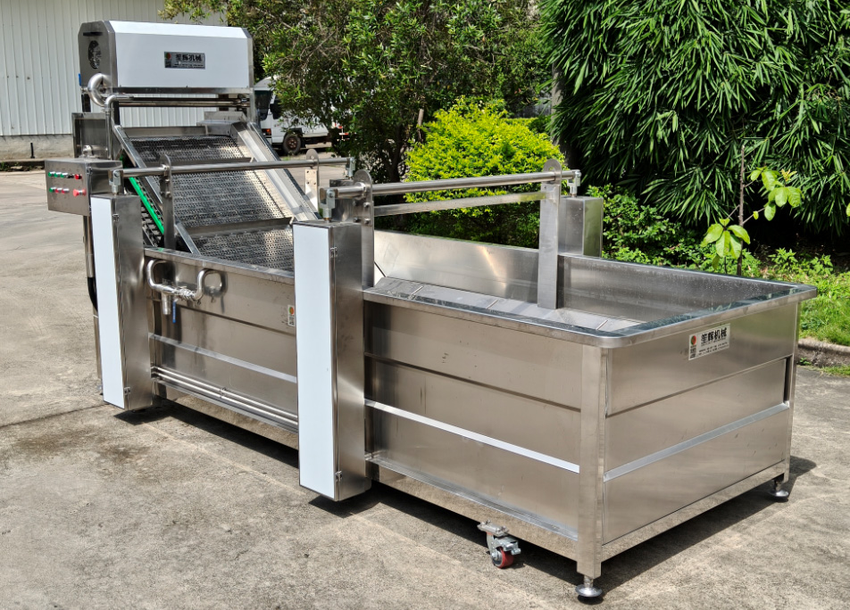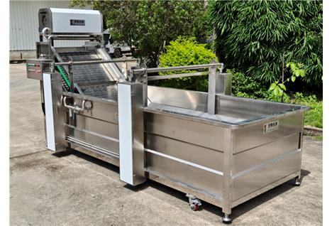 區別于常規放血工作在于,一、加大水池容量,增加鼓泡功能,能刺激魚類在缸體里快速游動,從而加快血液快速排出;二、通過全網鏈式的輸送方式,可以將放完血的魚類直接輸送到一下加工環節,減少人工搬動的勞動輸出;三、可與多臺放血池,去鱗機,輸送帶,工作臺等連接成整條加工生產線,提升生產效率,減少原料損耗等;